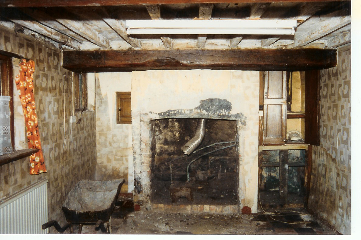 Sometime before 1690 Arthur Godwin became tenant. He had married as his second wife Ellen Harrison on the 26 July 1672 at St Oswalds Church, Bidston. It is their initials that appear on the west gable of Ivy Cottage and also on the inglenook bressumer. Arthur Godwin lived in an era of agricultural prosperity. The Wirral was never as prosperous as the Cheshire Plain owing to the relatively poor soil, but through improved farming practices it began to support pastoral farming, the rearing of cattle and dairy produce, especially cheese. The close proximity to the Irish Sea and the Mersey helped the local economy providing the means of export by sea and river and a growing market for their produce in Liverpool. It was during this period, which lasted to the 1690's, that Arthur Godwin rebuilt his house around the earlier cruck truss and timber framed building. To build in stone can be expensive especially if it has to be brought some distance overland. This may partly explain the unusually thin walls built of parpoints with the cruck trusses remaining in situ to assist in maintaining the buildings stability in the western bay and part of the housebody. The new inglenook no doubt replaced a former cruck truss.