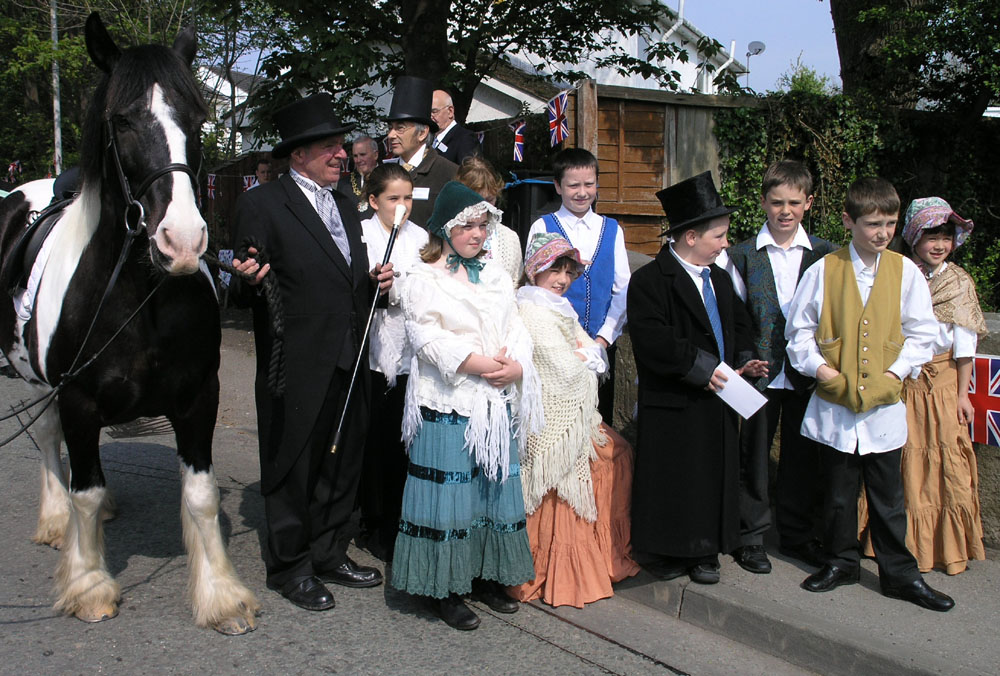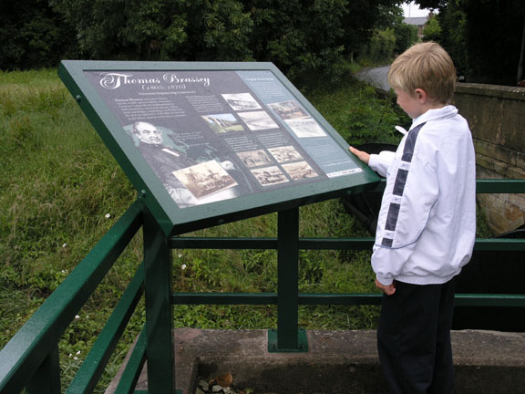 To celebrate the granting of the listing, on Saturday, 28 April 2007, the now famous bridge was closed to traffic and various dignitaries attended the "grand opening" with speeches being made. Villagers had started preparing for the day at 6 am, erecting a marquee with an information and picture display about Thomas's life and work. Many of the local children and adults dressed up in Victorian clothes, the whole area was decorated with bunting, brass band music was played through loud speakers and the event opened with a Thomas Brassey look-alike leading a shire horse over the bridge. A brass plaque had been previously attached to the bridge side and this was unveiled by the Mayor. The Interpretation Panel was also unveiled by the oldest resident of the village, Mrs Mary Robinson of Poplar Farm and one of the youngest, a pupil from Overchurch Junior School. Our then Society Chairman and his wife generously extended the hospitality of their garden to entertain those present during which a superb buffet was provided by the ladies of the village along with a celebration cake.