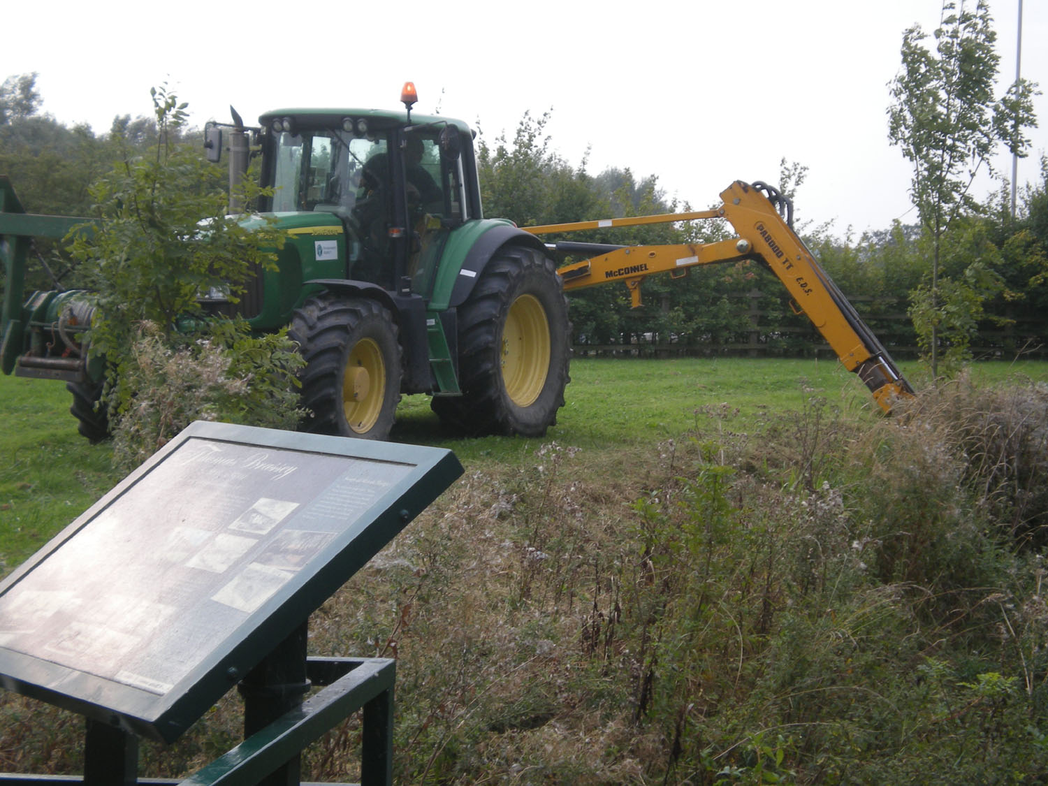 Following extensive lobbying by the Village Heritage Officer, Tuesday 1st October saw some unusual activity along the Arrowe Brook. The Environment Agency and their vehicles had come to cut the long grass down the side of the bank. However, they were not aware that the piece by the Bridge was also now included - as the Council had taken away the fencing some time ago. Following conversations and a quick telephone call to the Supervisor, they then moved the vehicles into the small grassed area next to the by-pass and cut the offending greenery. Only to within a metre of the water, though, to protect vole habitats. As you can see from the pictures, they have done a good job. October update: We are pleased to report that they have been back again to cut the brook margins.
